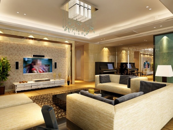 标签: 豪华客厅 室内家装 客厅模型 装潢模型 沙发模型 钢琴 水晶吊灯 电视背景墙