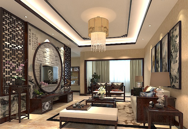 标签: 中式客厅 客厅模型 室内中式 背景墙 中式沙发 吊灯 电视柜 设计 环境设计 室内设计