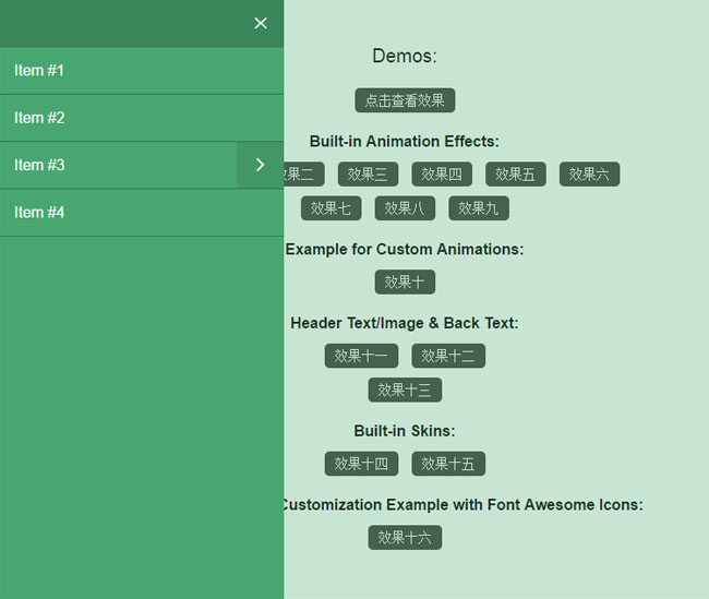 简介:jQuery网站侧边隐藏展开导航插件,里面总共有十几种效果切换,效果非常棒。