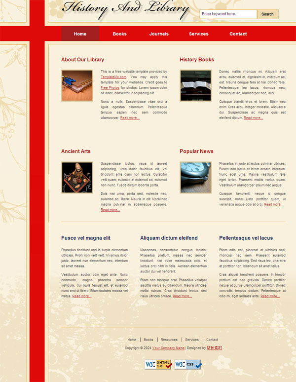 简介:历史图书馆CSS网页模板 橙色 商务 图书馆 网页 模板 企业 商业 公司 设计 主页 HTML DIV+CSS 模板下载