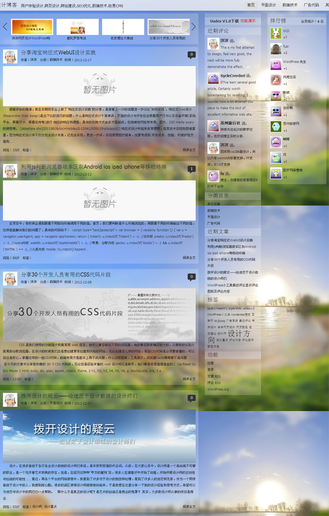 简介:wordpress响应式布局主题采用html5结构,头部固定在顶部(带关闭)。
