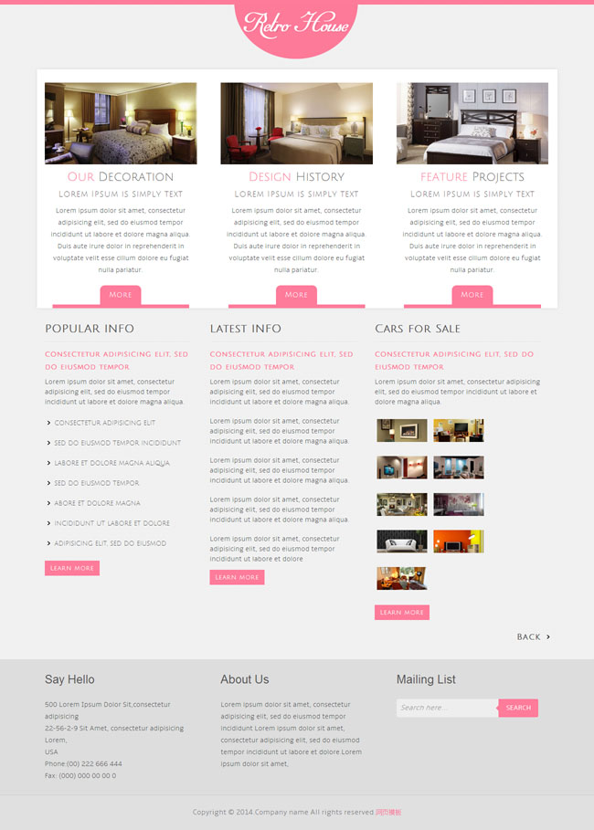 粉红色清爽家居网站模板