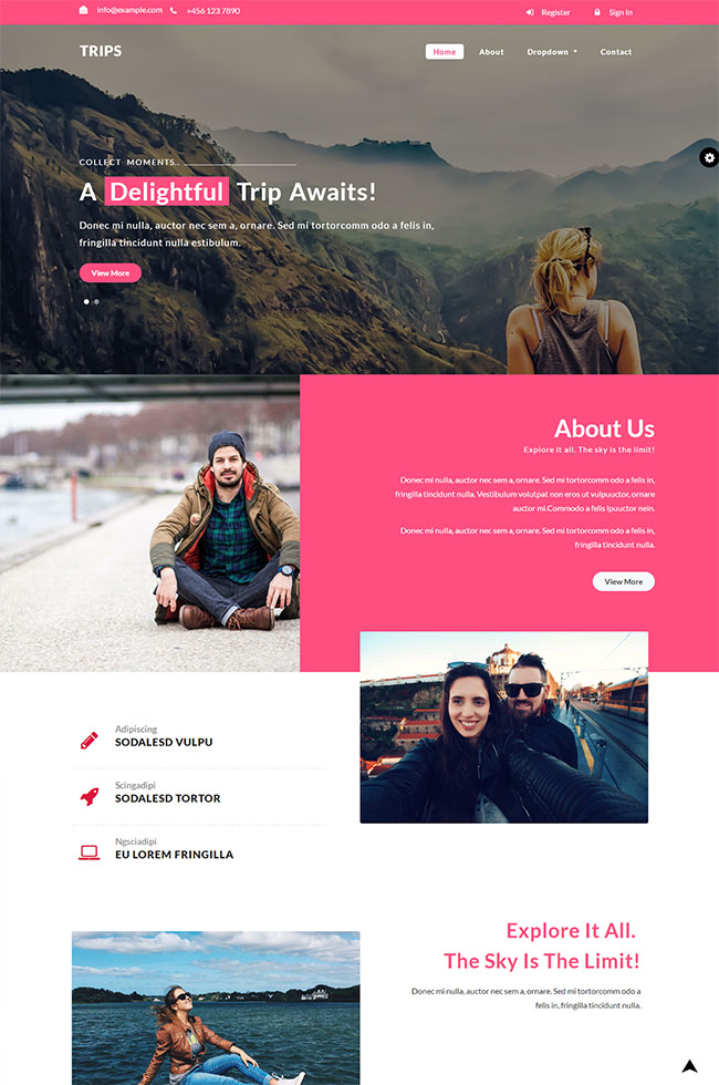 简介:粉红色旅行结婚网站模板是一款适合大气的旅游公司网站模板下载。提示:本模板调用到谷歌字体库,可能会出现页面打开比较缓慢。