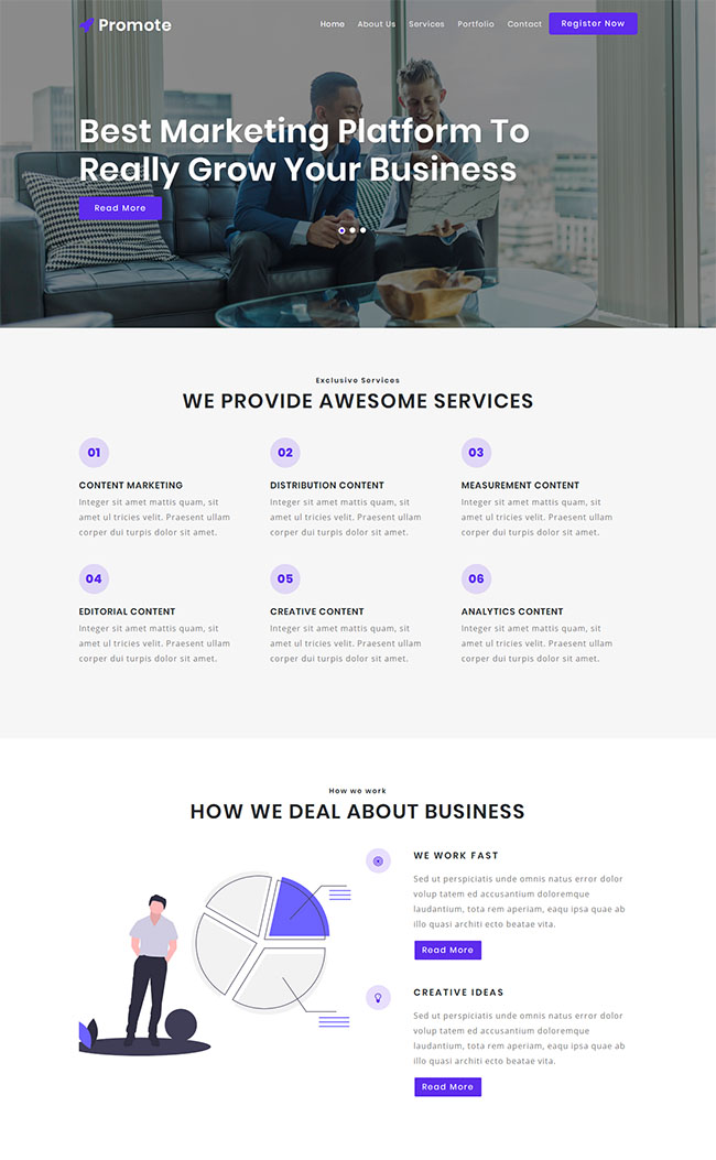 简介:紫色营销公司官网网站模板是一款适合公司企业类网站模板下载。提示:本模板调用到谷歌字体库,可能会出现页面打开比较缓慢。