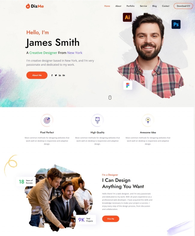 简介:创意设计师个人简历网页模板是一款适合从事创意设计师岗位的个人简历展示网站模板下载。提示:本模板调用到谷歌字体库,可能会出现页面打开比较缓慢。