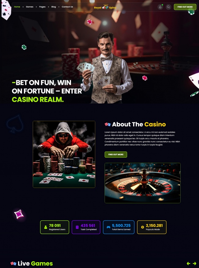 简介:HTML5在线纸牌游戏娱乐网站模板是一款适合提供各种在线娱乐游戏服务宣传网站模板下载。提示:本模板调用到谷歌字体库,可能会出现页面打开比较缓慢。