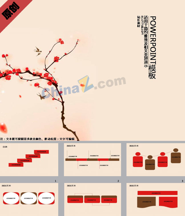 简介:傲雪梅花ppt模板适用于古典文化主题设计应用。本作品提供PPT,PPTX格式文件,由【站长素材】原创,转载请注明出处!
