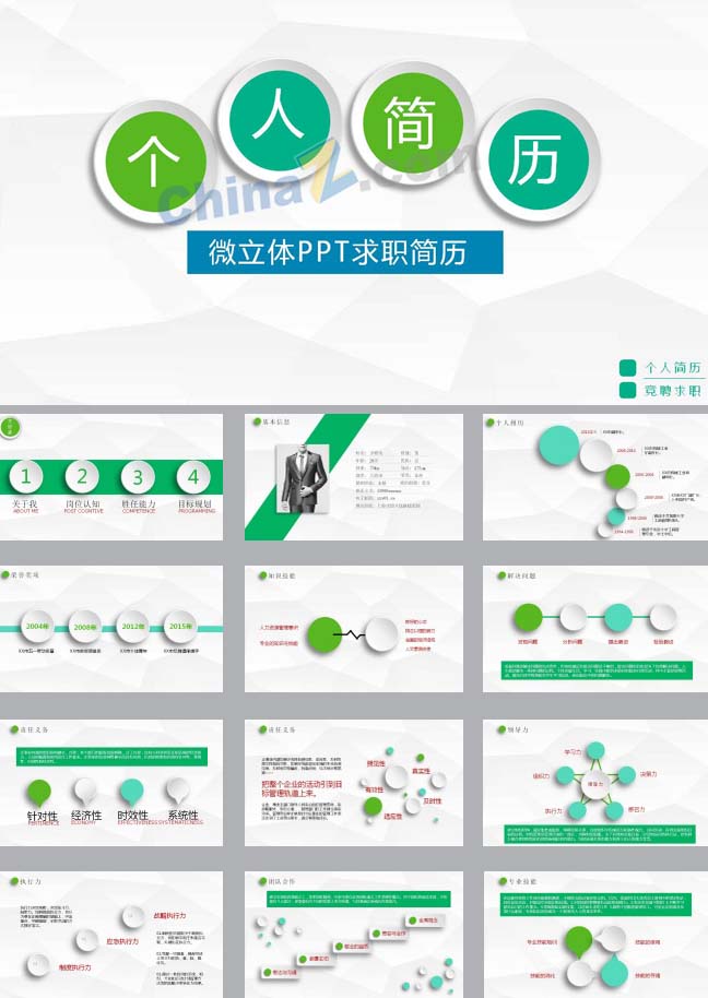 简介:清爽微立体个人简历的ppt模板适用于求职应聘设计应用。本作品提供PPT,PPTX格式文件,由【站长素材】原创,转载请注明出处!