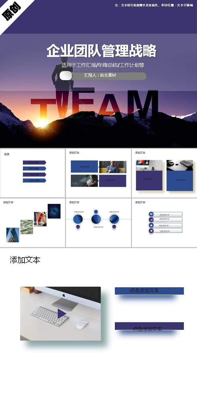 简介:企业团队管理ppt模板适用于商务办公设计应用。本作品提供PPT,PPTX格式文件,由【站长素材】原创,转载请注明出处!