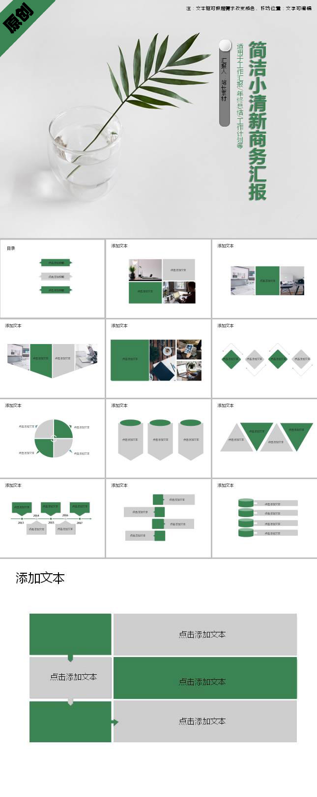 简介:简洁小清新商务汇报PPT模板适用于商务办公设计应用。本作品提供PPT,PPTX格式文件,由【站长素材】原创,转载请注明出处!