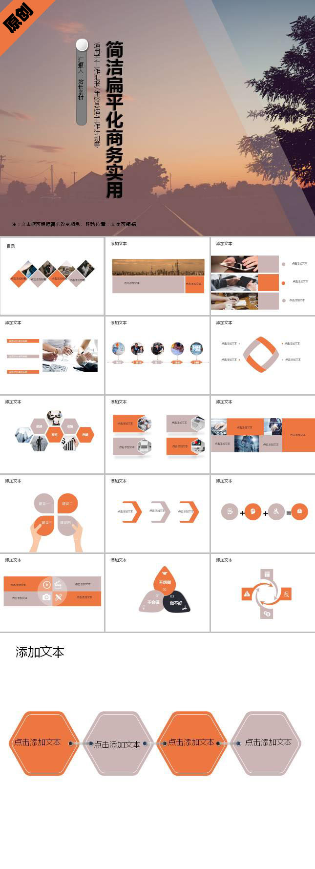 简洁扁平化商务实用ppt模板