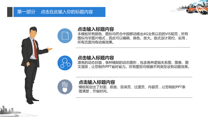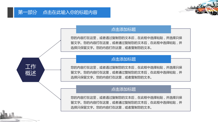 简介:汽车销售PPT模板适用于汽车行业市场宣传推广演示模板。本作品提供pptx格式文件下载,站长素材PPT大全提供精选的PPT模板素材 。