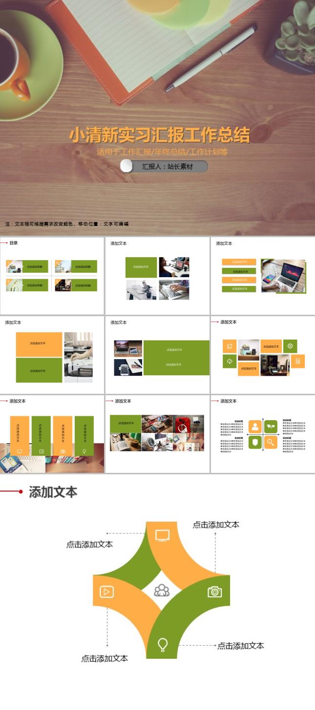 简介:小清新实习汇报工作总结ppt模板适用于商务办公设计应用。本作品提供PPT,PPTX格式文件,由【站长素材】原创,转载请注明出处!
