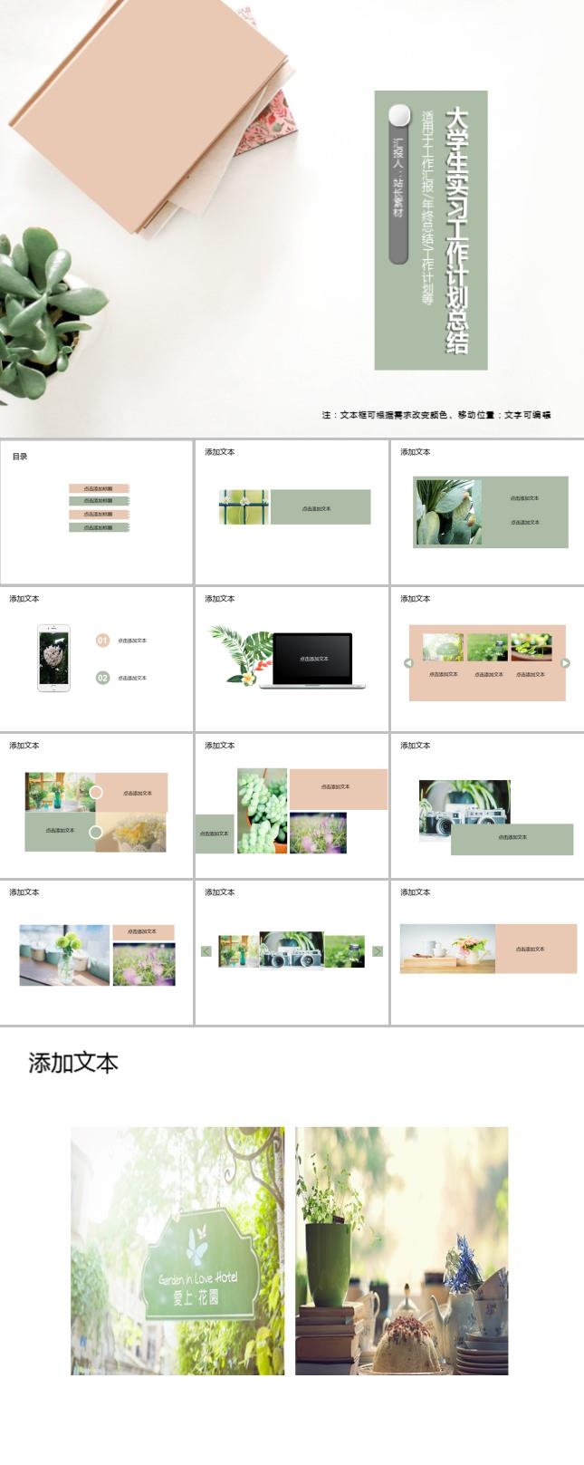 简介:大学生实习工作计划总结PPT模板适用于商务办公设计应用。本作品提供PPT,PPTX格式文件,由【站长素材】原创,转载请注明出处!