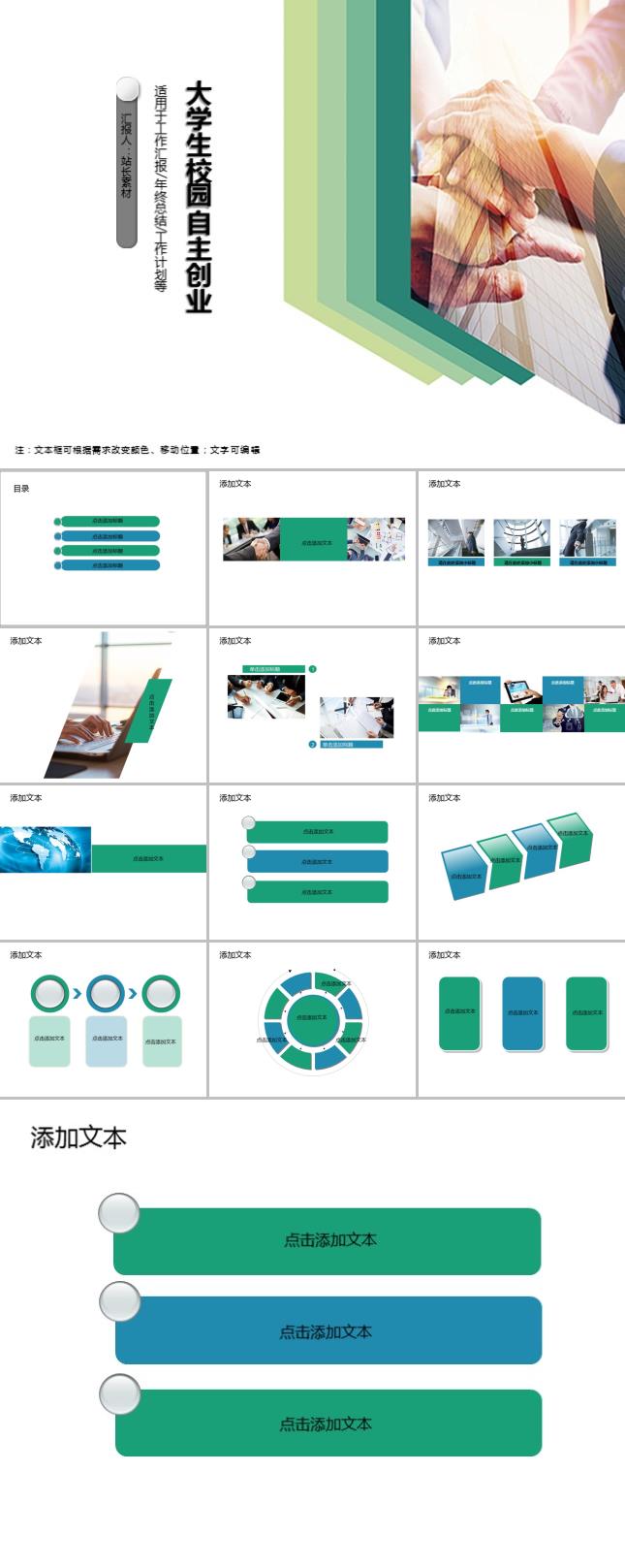 简介:大学生校园自主创业PPT模板适用于商务办公设计应用。本作品提供PPT,PPTX格式文件,由【站长素材】原创,转载请注明出处!
