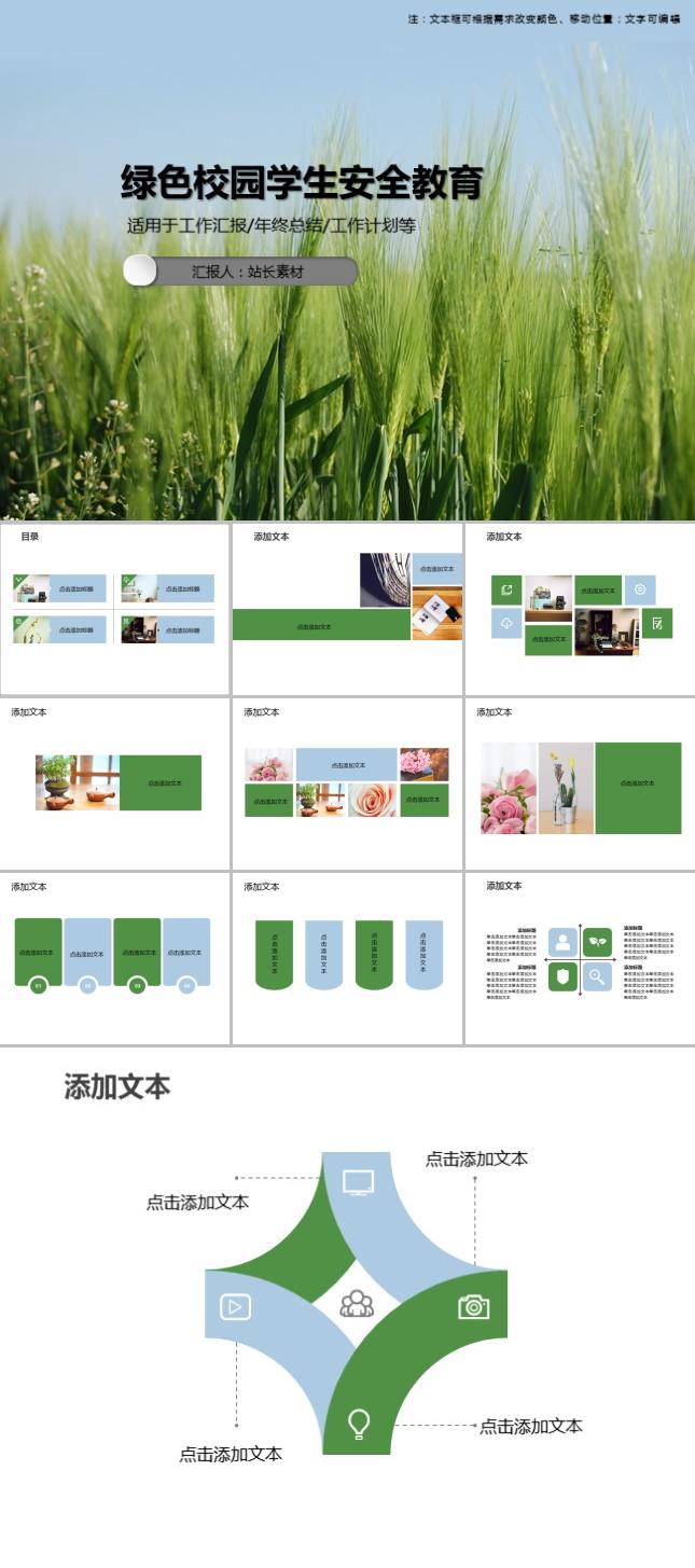 简介:绿色校园学生安全教育PPT模板适用于商务办公设计应用。本作品提供PPT,PPTX格式文件,由【站长素材】原创,转载请注明出处!