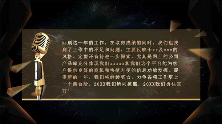 简介:企业年终晚会盛典PPT模板适用于年终盛典演示模板。本作品提供pptx格式文件下载,站长素材PPT大全提供精选的PPT模板素材。