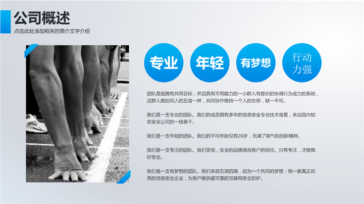 简介:精美全面企业宣传创业融资PPT模板适用于企业宣传演示模板。本作品提供pptx格式文件下载,站长素材PPT大全提供精选的PPT模板素材。