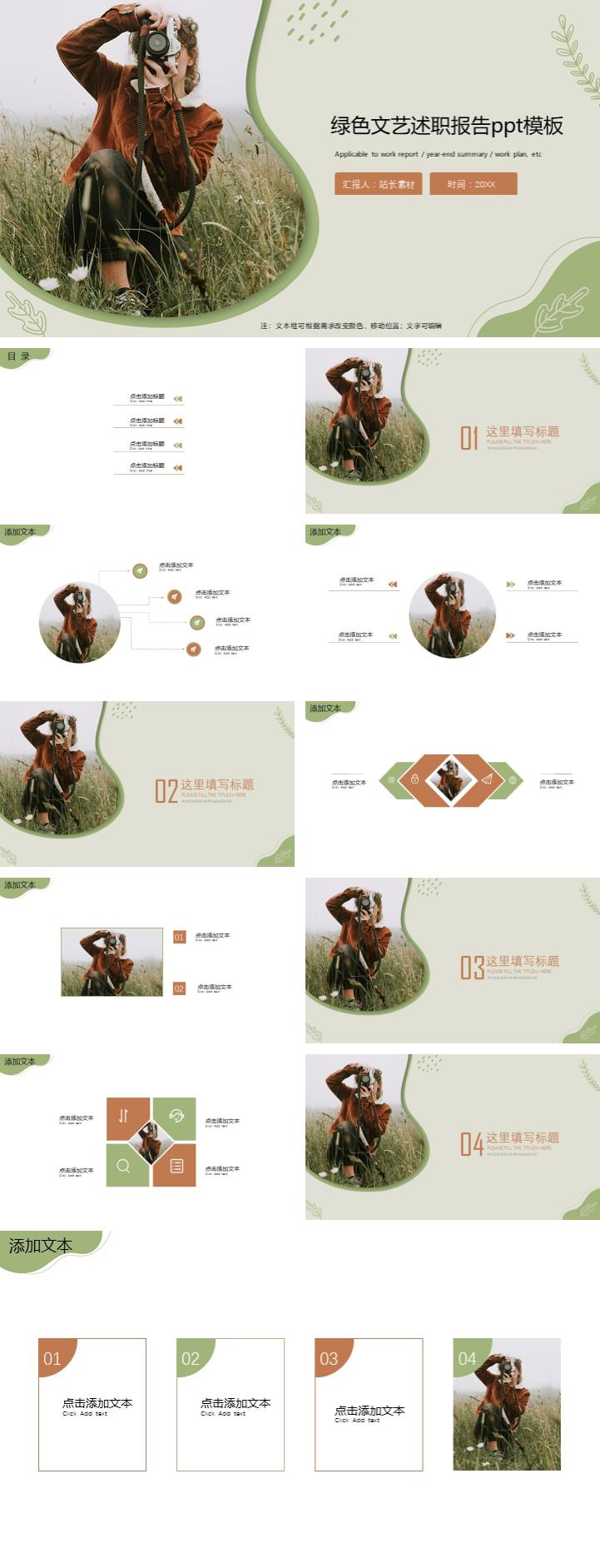 绿色文艺述职报告ppt模板