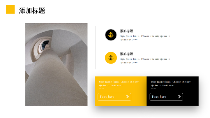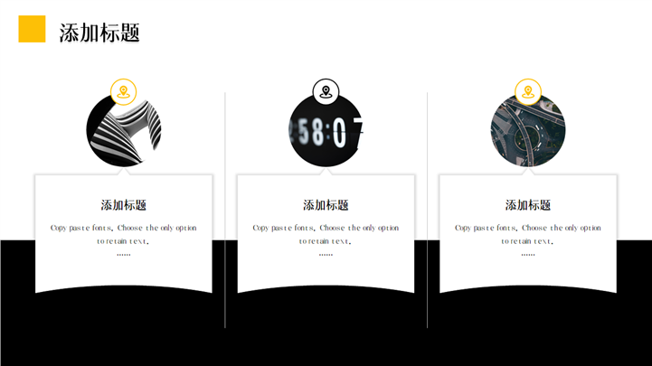 简介:欧美极简主义企业宣传公司介绍PPT模板是一款企业宣传PPT模板,内容元素以黄色和黑色两种色调相互搭配,涵盖公司介绍、项目介绍、运营状况、发展计划等模块内容,框架完整,配色醒目,风格简约,通用于各行业企业宣传、公司介绍等方面演示模板。本作品提供pptx格式文件下载,站长素材PPT大全提供精选的PPT模板素材。