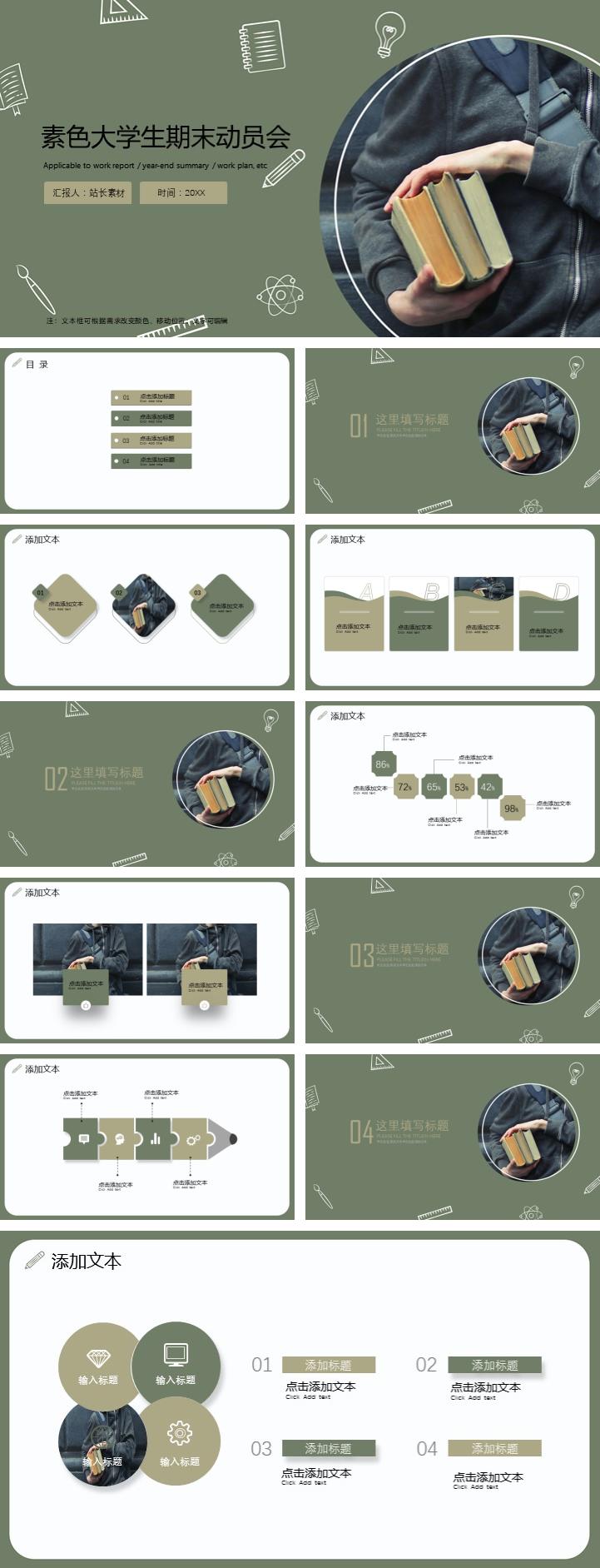 素色大学生期末动员会ppt模板