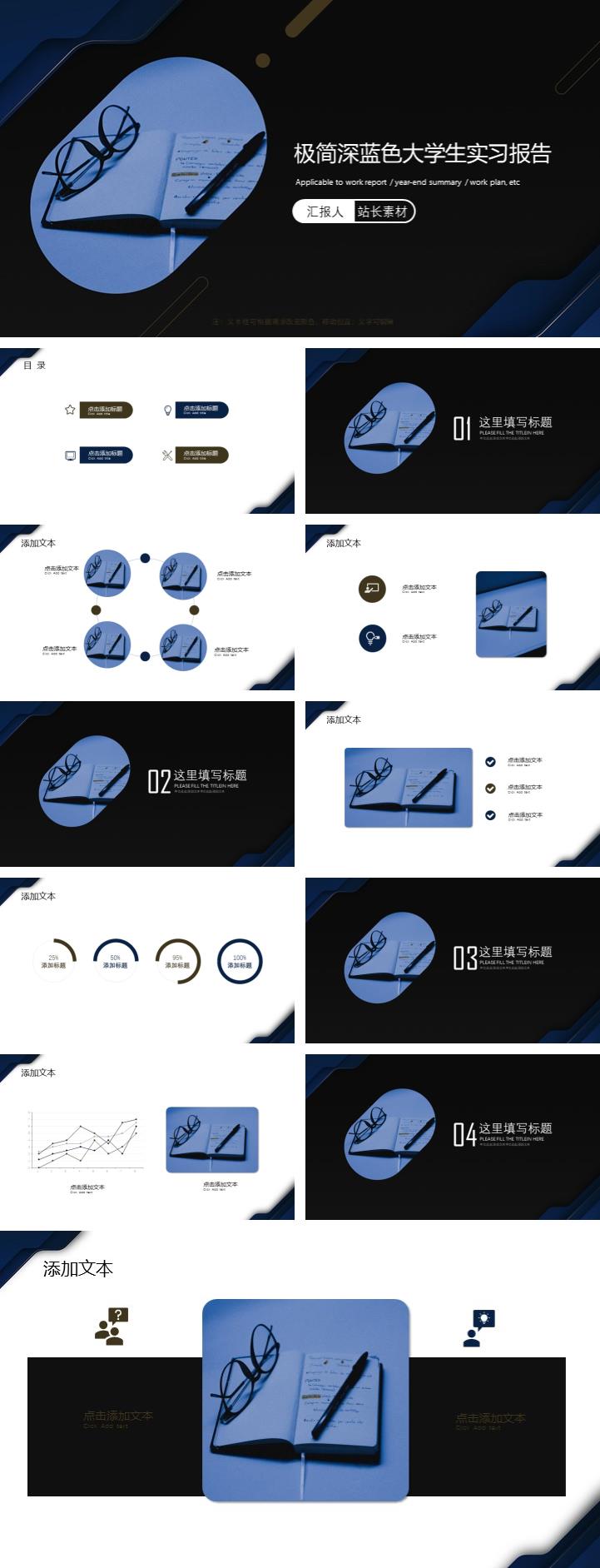 极简深蓝色大学生实习报告ppt模板