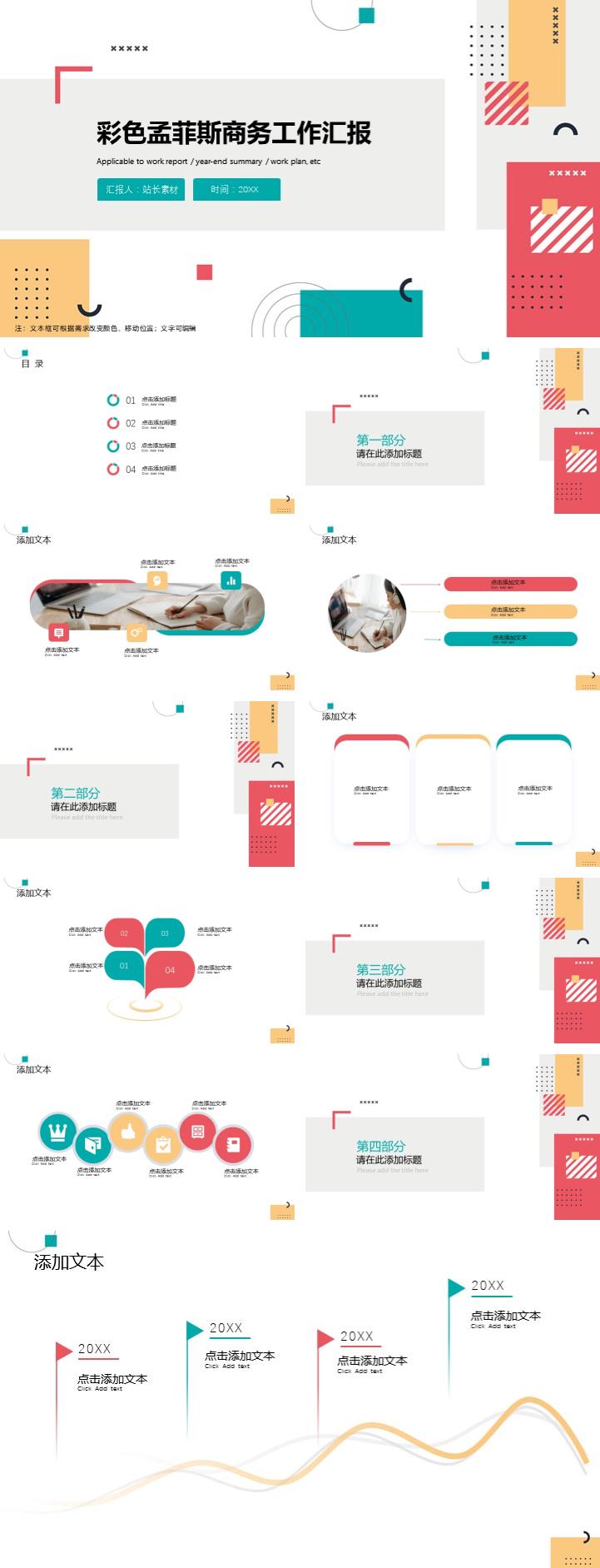 彩色孟菲斯商务工作汇报ppt模板
