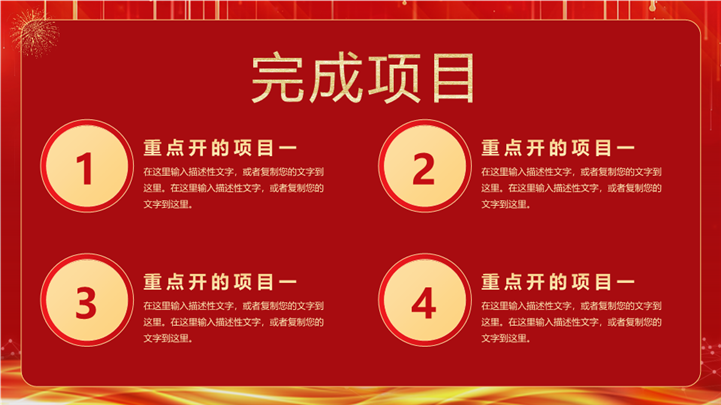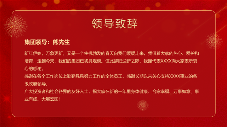 简介:202X企业年度颁奖典礼暨述职汇报ppt模板,红色为主色调,整体界面喜气商务风格,主要包含年度工作总结Annual work summary、优秀员工颁奖Award for outstanding employees、明年工作计划Work plan for next year、员工风采展示Employee style display等模块内容,适用于颁奖典礼、颁奖庆典、年会颁奖、企业年会主题、尾牙年会、年会汇报、年会颁奖、公司年会等相关主题设计应用。主体文字及图片可替换修改,文字修改均可直接点击文本框进行编辑,图片更改可选中图片后单击鼠标右键插入更换图片,也可根据自身需求增加和删除。 本作品提供PPTX格式文件,转载请注明出处!