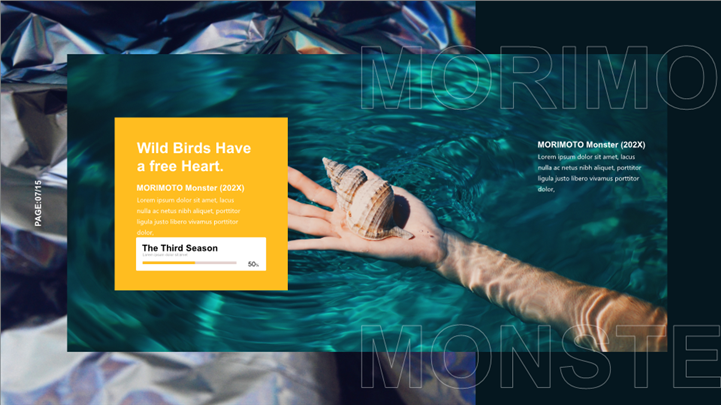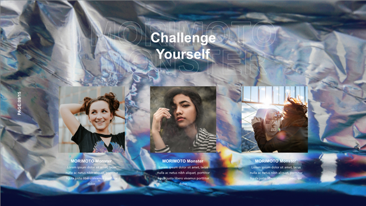 简介:前卫艺术潮酷视觉时尚摄影作品集ppt模板,适用于尚摄影作品集等相关主题设计应用。主体文字及图片可替换修改,文字修改均可直接点击文本框进行编辑,图片更改可选中图片后单击鼠标右键插入更换图片,也可根据自身需求增加和删除。本作品提供PPTX格式文件,转载请注明出处!