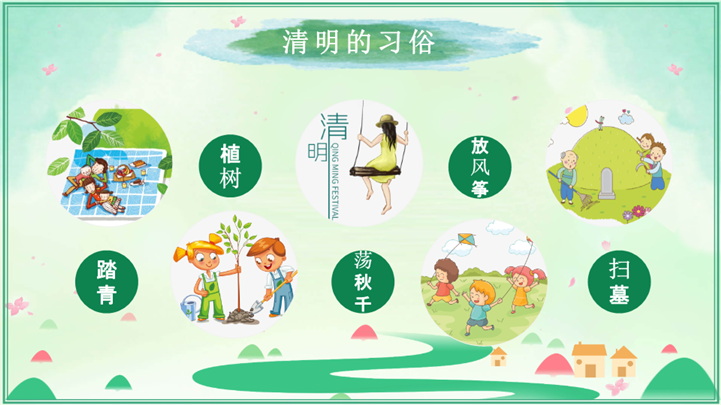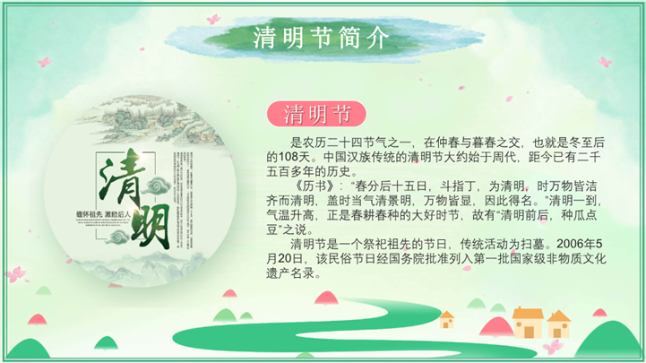 清新国风春日清明节气民俗文化介绍ppt模板