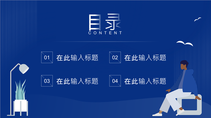 深蓝简约插画风世界读书日活动ppt模板