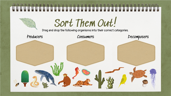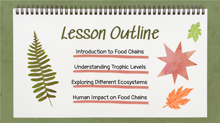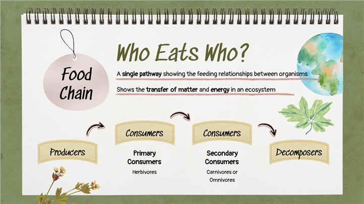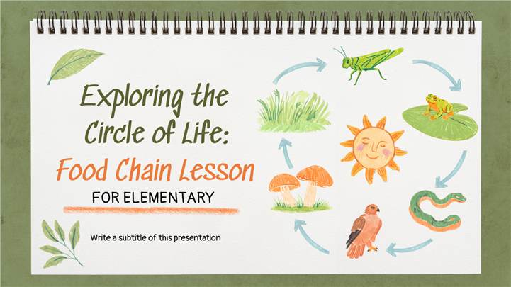 简介:手绘写生簿风小学科学食物链教学PPT模板,这款手绘写生簿风格小学科学PPT模板,通过蜡笔插画生动展示大自然的生命循环。封面描绘了从太阳、植物(生产者)到昆虫、猛禽(消费者)的食物链闭环。模板内含生态系统角色介绍、食物网拼图、动植物关系图谱及户外观察记录表,是生物启蒙与自然教育的理想课件。主体文字及图片可替换修改,文字修改均可直接点击文本框进行编辑,图片更改可选中图片后单击鼠标右键插入更换图片,也可根据自身需求增加和删除。 本作品提供PPTX格式文件,转载请注明出处!