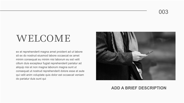 简介:极简现代黑白杂志风竞聘述职ppt模板,适用于工作复盘、月度总结、月度复盘、计划总结、商务总结、工作总结、总结汇报、商务汇报等相关主题设计应用。主体文字及图片可替换修改,文字修改均可直接点击文本框进行编辑,图片更改可选中图片后单击鼠标右键插入更换图片,也可根据自身需求增加和删除。本作品提供PPTX格式文件,转载请注明出处!
