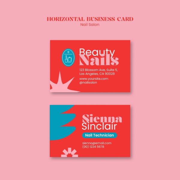 红色极简风格美甲名片模板PSD