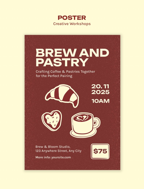 简介:创意糕点美食坊宣传海报设计适用于糕点美食海报模板设计