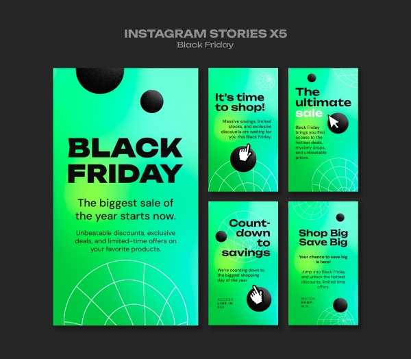 绿色弥散风格黑色星期五促销INS模板