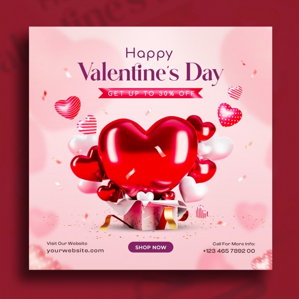 简介:浪漫情人节主题方形海报PSD适用于情人节海报模板设计