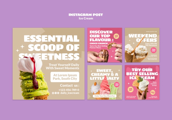 INS风格冰激凌美食宣传模板设计