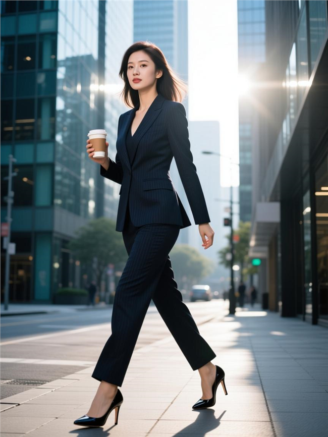 简介:城市街头街拍商务美女写真图片 28 岁职业女性穿深色西装套裙,脚踩高跟鞋,手持咖啡杯行走在清晨的 街头,阳光透过高楼玻璃折射,面部表情干练自信,动态抓拍,街拍风格,冷色调 图片大全 高清图片下载