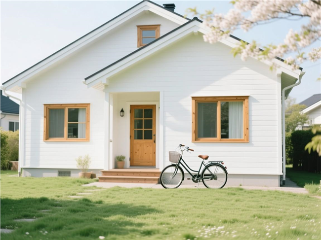 简介:白色独栋住宅日系清新摄影图片 日系清新摄影,平视角度,北欧风格白色独栋住宅,原木色窗框与浅绿草坪相映,门前摆放复古自行车,春日午后柔和的散射光,画面干净通透,低饱和度,胶片质感 图片大全 高清图片下载